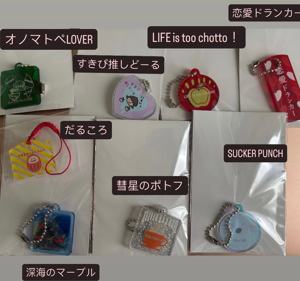 アルバム「SUCKER PUNCH!」の楽曲から妄想し辻詩音自らがデザインしたキーホルダーくじ。
